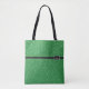 This tote bag is shown with a fun Green faux glitter print and a black stripe between top and bottom with a small Silver tiara crown as if it were a buckle on stripe.