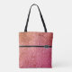 This tote bag is shown with a fun Peach to Coral glitter print and a black stripe between top and bottom with a small Silver tiara crown as if it were a buckle on stripe.