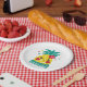 Miss Hawaiian Pineapple pattern illustration inspired by hawaiian hula dancer costume and accessories while pineapple is identical as tropical fruit. Use bright colour choice to show freshness and tropical athmosphere. The illustration is use watercolor painting technique.