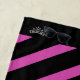 Hot Pink stripes mingle with sexy Black on this beach towel. Both ends have space for customisation and feature a fancy swirl Silver-colour crown print on each end of the towel. Customise or buy as designed.