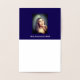 This thank you note card is shown with a sample photo print on inside top over a deep rich blue background and an orchid spray in gilded real gold foil on the front. Must customise your text on front and inside top of card. Upload your own photo image. Customise further by changing inside background colour add or delete text. Front background colour only in white, but you can select silver foil or gold foil as shown. Blank inside for your personalised touch. Can't think of what to say? We'll help draught your message!