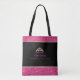 This tote bag is shown in faux hot pink and gold coloured glitter band at top and bottom with black strap handles. Black bag and on both sides is an attractive crown with faux deep pink colour stones. Sample text reads " Miss Kent Valley Rodeo Queen 2019".