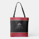 This tote bag is shown in two tone colour scheme. Faux red and silver coloured glitter band at top and bottom with black strap handles. Black bag and on both sides is an attractive crown with faux red colour rounds-like-stones. Sample text reads " Miss Kent Valley Rodeo Queen 2019".