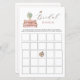'Travelling from Miss to Mrs' Travel theme Bridal shower Bingo game card featuring cute hand painted watercolor suitcase and globe. Personalise the back of the card with name of the bride and shower date.