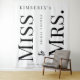 Bold typography black and white trendy bridal shower Miss to Mrs. name personalised white photo booth backdrop.