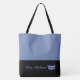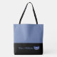 This cute stylish large tote bag is shown in a Medium Blue and black bottom colour block style with a Blue pageant crown and custom text.