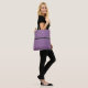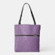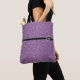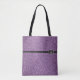 This tote bag is shown with a fun faux Purple glitter print and a black stripe between top and bottom with a small Silver crown as if it were a buckle on stripe.