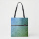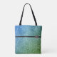 This tote bag is shown with a fun faux Blue to Sea Green glitter print and a black stripe between top and bottom with a small Silver crown as if it were a buckle on stripe.