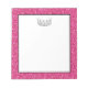 Notepad shown with a fun faux Pink glitter border edges and a single medium-large sized black and white crown at the top. White space in centre for you to jot down your messages.