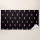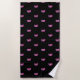 This beach towel is shown in a Black background colour with a print of a gleaming Hot Pink pageant crown.
