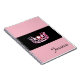 Notebook shown with a photo print of a gleaming Pink coloured crown print on a black background and a personalised name. Notebook shown in Pink. Customise this item and change the name to yours or take off, or purchase as shown.