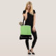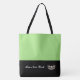 This cute stylish large tote bag is shown in a Apple Green and Black colour block style with a pageant crown and custom text.