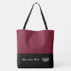 This cute stylish large tote bag is shown in a Wine and Black colour block style with a pageant crown and custom text.