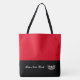 This cute stylish large tote bag is shown in red and black colour block style with a pageant crown and custom text.