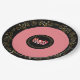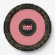 These pageant festive paper plates are great for serving up some fun (and easy clean up too) for your next pageant get together. Add your pageant theme or pageant name if desired. Shown here is a bright Coral-Pink inner rim and a gleaming Coral-Pink crown print in the centre over chic Black background. Double Gold coloured border frills on the Black outer border and on the inner area round the gleaming crown. Personalise or buy as designed.