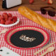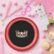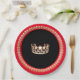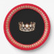 These pageant festive paper plates are great for serving up some fun (and easy clean up too) for your next pageant get together. Add your pageant theme or pageant name if desired. Shown here is a bright Red rim and a gleaming Gold crown print in the centre over chic Black background. Gold coloured regal trim on the rim. Personalise or buy as designed.