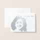 This card is shown in white matte finish card stock paper with a Miss USA-type round crown and Thank You in real silver foil on the front. Inside is shown with a pastel periwinkle blue background, a PHOTO for you to CUSTOMIZE and a pre-written greeting which you can keep as is or customise to your liking. You must customise the photo to your own.