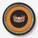 These pageant festive paper plates are great for serving up some fun (and easy clean up too) for your next pageant get together. Add your pageant theme or pageant name if desired. Shown here is a bright Orange rim and a gleaming Orange crown print in the centre over chic Black background. Gold coloured regal trim on the rim. Personalise or buy as designed.