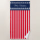 This beach towel is perfect for celebrating your patriotic spirit. Shown in a festive patriotic stars and stripes flag print design with your custom name, title or phrase.