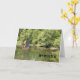 Miss You card for two children at Summer Camp. The front of the card has a small pond in a wooded area with a darker skinned boy and girl. The boy is in a small sail boat and the girl is standing on the dock. This card can be used for twins at camp, a boy, or a girl, or just a brother and sister. Thanks to the hungryjpeg for some of the elements in the design