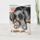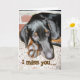 Say "I miss you" with this adorable card, featuring a sad-faced Doberman Pinscher puppy resting it's head on it's paw. The inside text can be kept as is, or personalized by you for that added touch. Photo by designer.
