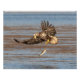 An immature bald eagle looks down at the fish it dropped.