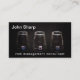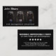 Three transparent glasses with dices inside. Impossible to miss and lose. Risk management consultant unique and funny business card. Name and job title on the front, company name, mission, contact info on the back. Black background. Fully customisable. You can change two images and you can change or delete all the texts. Have fun and make a pack for yourself or as a gift!