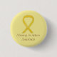 Missing in Action (MIA) awareness cause uses a yellow ribbon. The awareness ribbon pin features the painting of a yellow awareness ribbon on a custom button pendant. The awareness pendant notes "Missing in Action Awareness". The yellow awareness ribbon art lapel pins or buttons can be customised with personalised messages to make great cause buttons for fundraiser pendants, awareness pin gifts, or other special pendant events or awareness lapel pin for the cause's occasions.