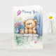 Missing You, Cute Bear at Window looking butterfly Card