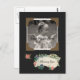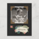 A missing you photo postcard with a vintage style black paper scrapbook page with old fashioned photo corners and a floral ribbon that says: Missing you. Custom text can be personalised.