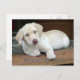 Now you know why they call it "puppy love." What an adorable yellow lab puppy, staring up with those loving blue eyes.