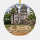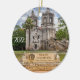Unique 2 sided ceramic ornament featuring Mission Concepción on the front with a symbolic photo, "Sacred" on the reverse. Change the year date to the current date.