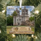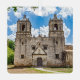 A colourful photograph of the entry signage for Mission Concepcion with the majestic architecture of the 18th century church. Two sided square ornament with different photos on each side. Adjust the year as necessary.