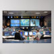 Flight director Tony Ceccacci (left) and astronaut Dan Burbank, STS-125 spacecraft communicator (CAPCOM), monitor data at their consoles in the space shuttle flight control room in the Mission Control Centre at NASA's Johnson Space Centre during flight day three activities. The Hubble Space Telescope, grappled by Space Shuttle Atlantis' remote manipulator system (RMS), is visible on one of the big screens.