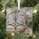 Unique glass ornament featuring the symbolic wrought iron cross from Mission Espada, in San Antonio. Change the year date to the current date.