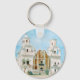 A watercolor painting of Mission San Xavier del Bac in Tucson, Arizona adorns this pretty keychain!