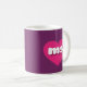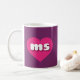 This mug features a vibrant hot pink heart containing the bold, white, rounded lower case letters ms, a playful abbreviation for Mississippi, the Magnolia State.