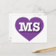 This postcard features a vibrant purple heart containing the bold, white, upper case letters MS, the official abbreviation for Mississippi, the magnolia state. The reverse side of the postcard is blank, awaiting your handwritten sentiments or personalised text.