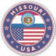 Missouri design with flag of Missouri and flag of United States, rounded shape.