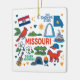 Commemorate your trip to the state of Missouri with this modern keepsake Christmas ornament, featuring hand-drawn style illustrations of iconic food, animals, landmarks, landscapes, and culture. Personalise the back to mark your US adventure and create a memory you'll hang up on the tree for the Holidays year after year.
