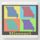 Colourful Pop Art map silhouettes of the state of Missouri.