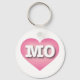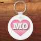 This keychain features a calm, cool, and collected pink heart with a white washed centre containing the bold white upper case letters MO, the official abbreviation for the state of Missouri, the Show Me state.