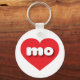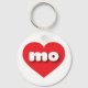 This keychain features a vibrant red heart containing the bold, white, rounded lower case letters mo, a playful abbreviation for Missouri, the show me state.