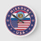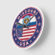 Badge of Missouri with flag of Missouri and flag of USA colours, rounded shape.