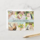 Elegant wedding thank you post card template features six (6) spaces for wedding day portraits with a custom mist green / blue and black monogram on the front and thank you message that can be personalised on the back. The mist and black colour scheme can be modified to coordinate with your photos. Photo filters are available via customise.