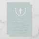 Elegant funeral invitation with a cross inside a laurel wreath and your invitation wording in elegant silver foil fonts against a misty sage blue background. Christian funeral invitation in silver and misty grey with a cross. Memorial service invitation personalised with your loved one's name in a beautiful script beneath a cross inside a laurel wreath.