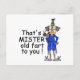 Humourous birthday attitude T-shirts, buttons, mugs, magnets, keychains, cards, stickers, and other birthday apparel and gifts featuring Gus with a birthday hat dressed in his robe and slippers saying "That's MISTER old fart to you!".