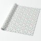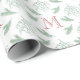Elegant green mistletoe and pine with red monogram on white Christmas holiday wrapping paper.