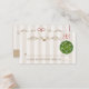Cute and fanciful, sweet and romantic mistletoe wedding seating place cards with a kissing ball and pomander decorated with festive mistletoe leaves, white berries and gold ornaments hung with a red bow. Pretty scroll flourishes, a heart and a cream striped background, subtle polka dot pattern and gold border complete this holiday and/or Christmas themed look. Add your own special message on the inside of the card. Artwork © Chrissy H. Studios, LLC. All Rights Reserved.