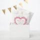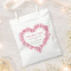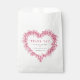 Mistletoe heart wreath drawing red and white winter wedding thank you favour bags. Add your own couple's name and wedding date in bright deep red on crisp white. Other colours and matching wedding items are available. © Original mistletoe heart drawing and design by Sarah Trett for www.mylittleedenweddings.com on Zazzle.